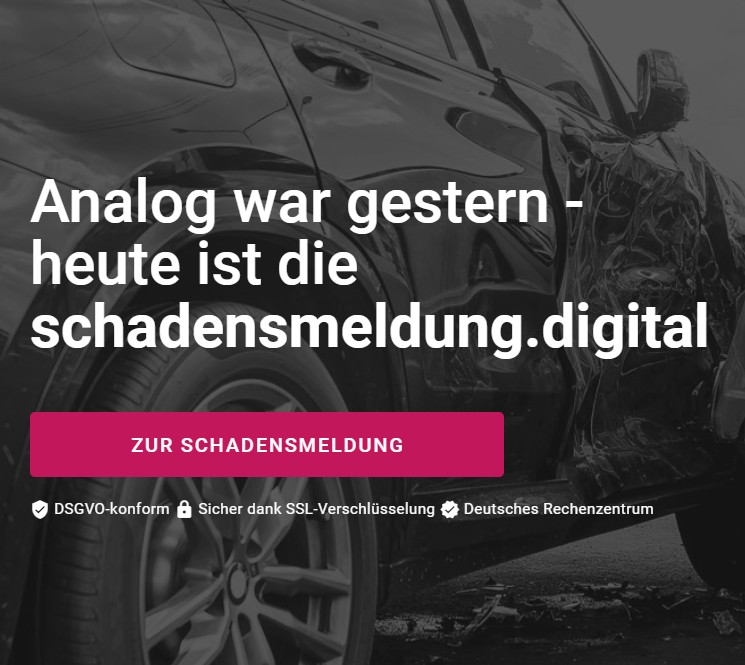 Melden Sie uns Kraftfahrt-Schäden ganz einfach und rund um die Uhr, mit der digitalen Schadensmeldung.
